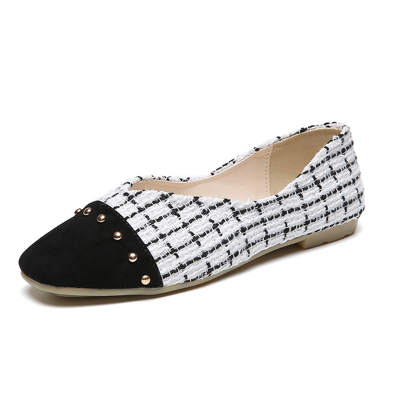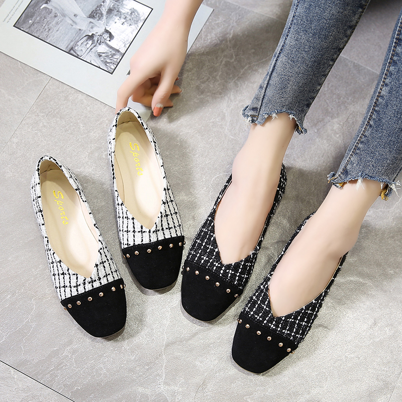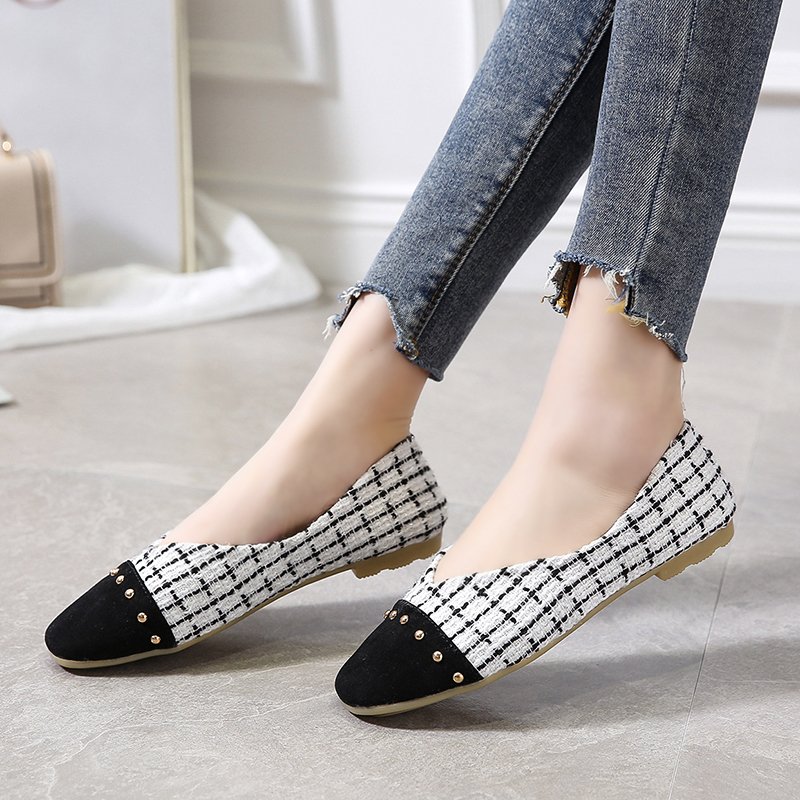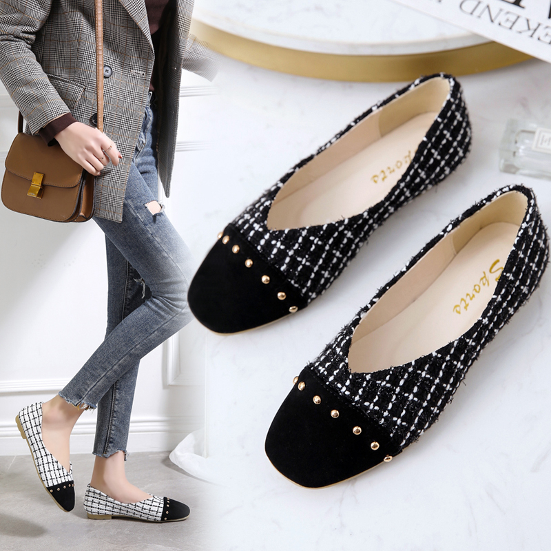 Women Flats Autumn New Plaid fabric Slip on Flat Shoes Patchwork Ballet Flats Rivet Ladies Shoes Shallow Single Shoes 8582N
