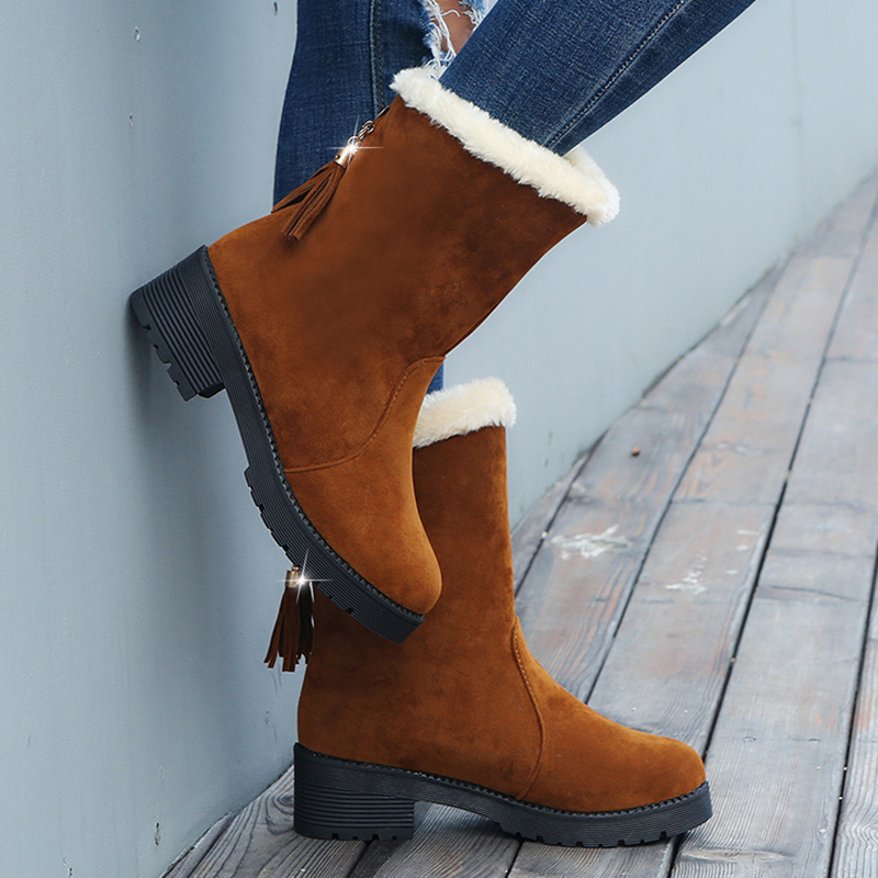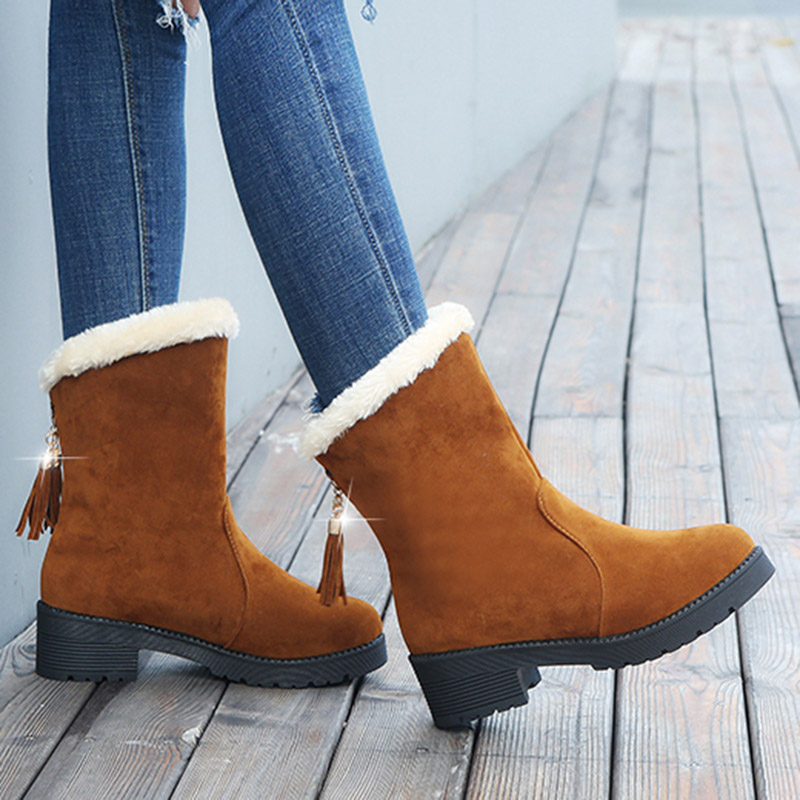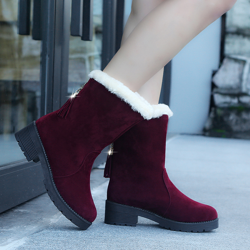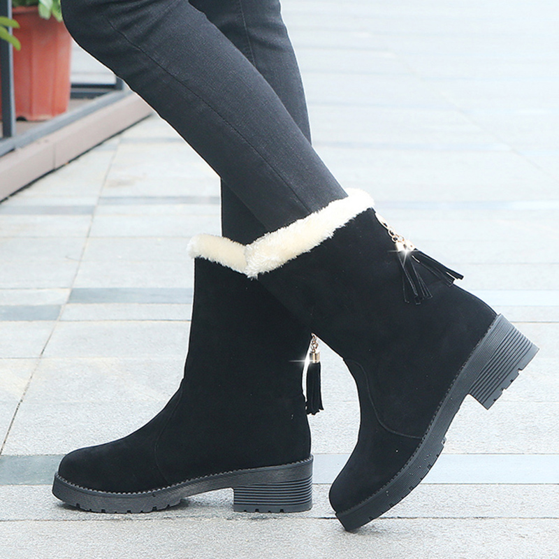 Women Snow boots Warm Plush Snow Shoes For Woman Ankle Boot Square Heels Booties Winter tassels botas mujer Black 8589N