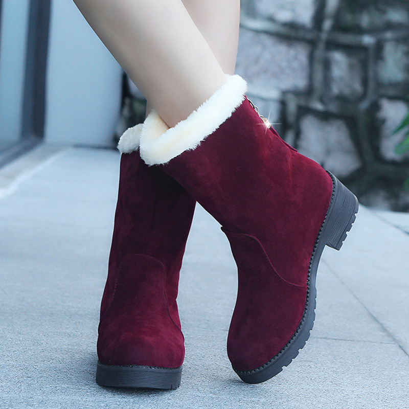 Winter Shoes Warm Plush Ankle Boots Mid Heels Dress Shoes Black Booties Bow Snow Shoes Plus 35 43 42 41 Botas Mujer 8524N