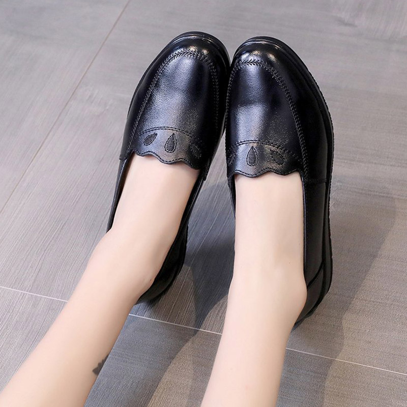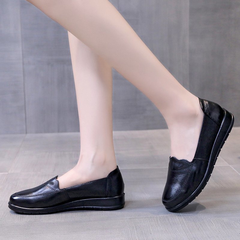 Genuine Leather Shoes Women Loafers Black Boat Shoes Comfortable Ladies Shoes Grandmother Slip on Flat Shoes Spring Autumn 8585N