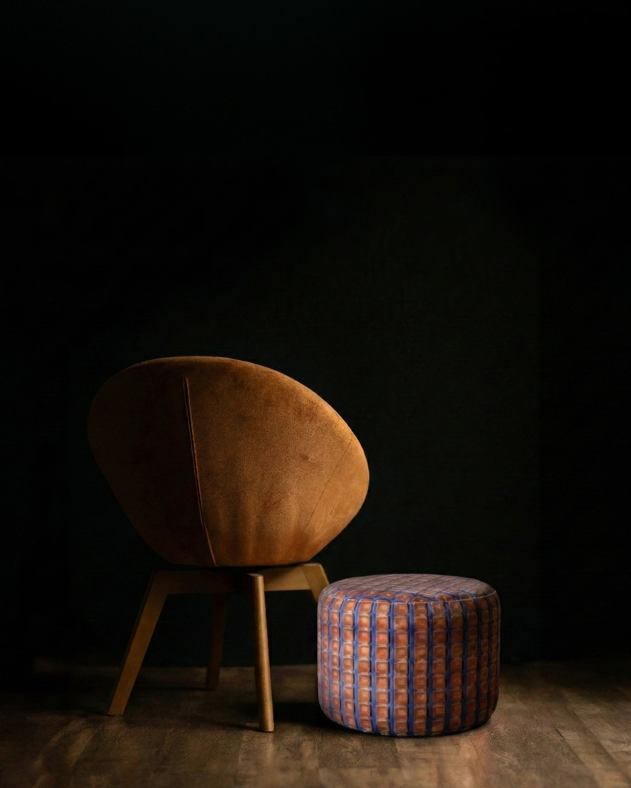 Description: Indulge in the unparalleled tactile experience of genuine high-end French velvet. This striking cylindrical footstool is more than just functional furniture; it is a work of textile art designed to elevate your living space.