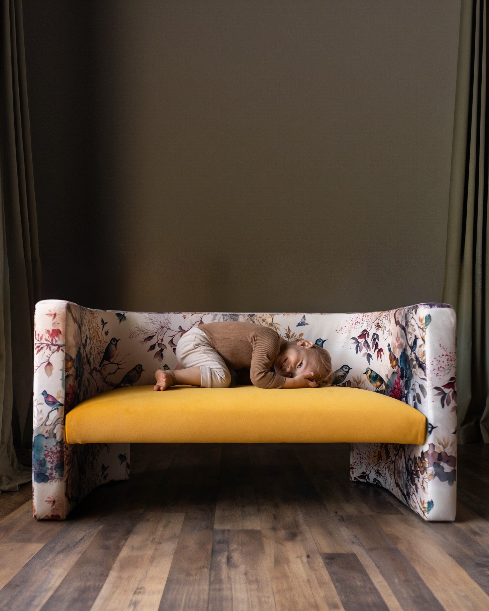 Create a whimsical and luxurious corner for your little one with the Byrd Child Sofa. This enchanting piece of furniture is perfectly proportioned for children, offering a cozy & stylish spot for reading, daydreaming, or quiet play.