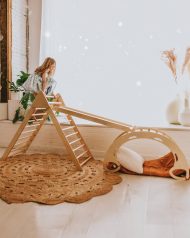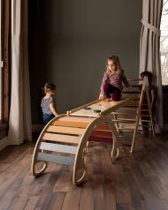The Cassarokids Jumbo Waldorf Playset combines a rocker, a reversible ramp/slide and a foldable climbing triangle. A perfect option for kids, each piece can be played with individually or in combination with any other pieces. Made from natural birch wood with solid beechwood rungs, it is slightly larger than our large combination. It’s simplistic design gives kids a chance to let their imaginations run wild. Order now and watch the child’s imagination take over.