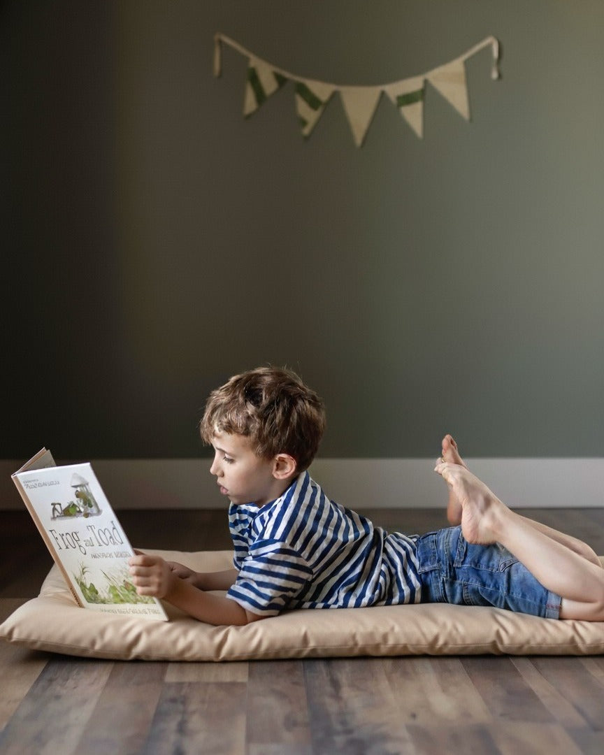 Whether it’s for a deep-dive into a favorite book, a comfortable spot for building blocks, or simply lounging on a lazy afternoon, this cushion is the ultimate foundation for quiet moments. Its sophisticated color palette ensures it looks just as beautiful in a living room as it does in a playroom. Create the reading nook of their dreams—right on the floor.