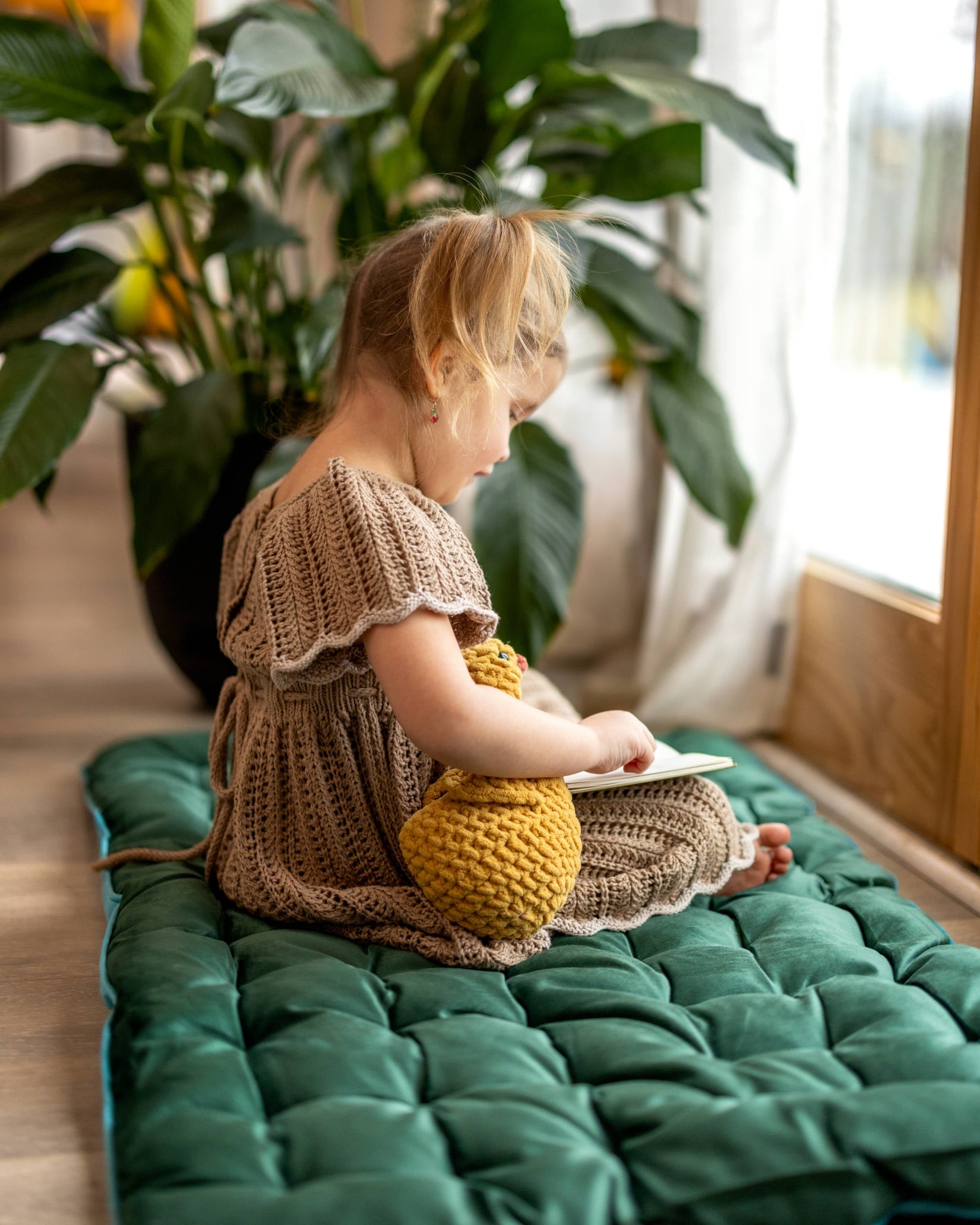 Cassarokids Jumbo Double Sided Tufted Floor Pillow Green Teal
