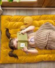 Surround your child with their favorite pile-up pillows to build a soft sanctuary of rest and relaxation. Inspire your child to dream up new, imaginative worlds while creating a comfy spot to let their minds wander. Add a blanket or our tent overtop your triangle and watch them snuggle in.