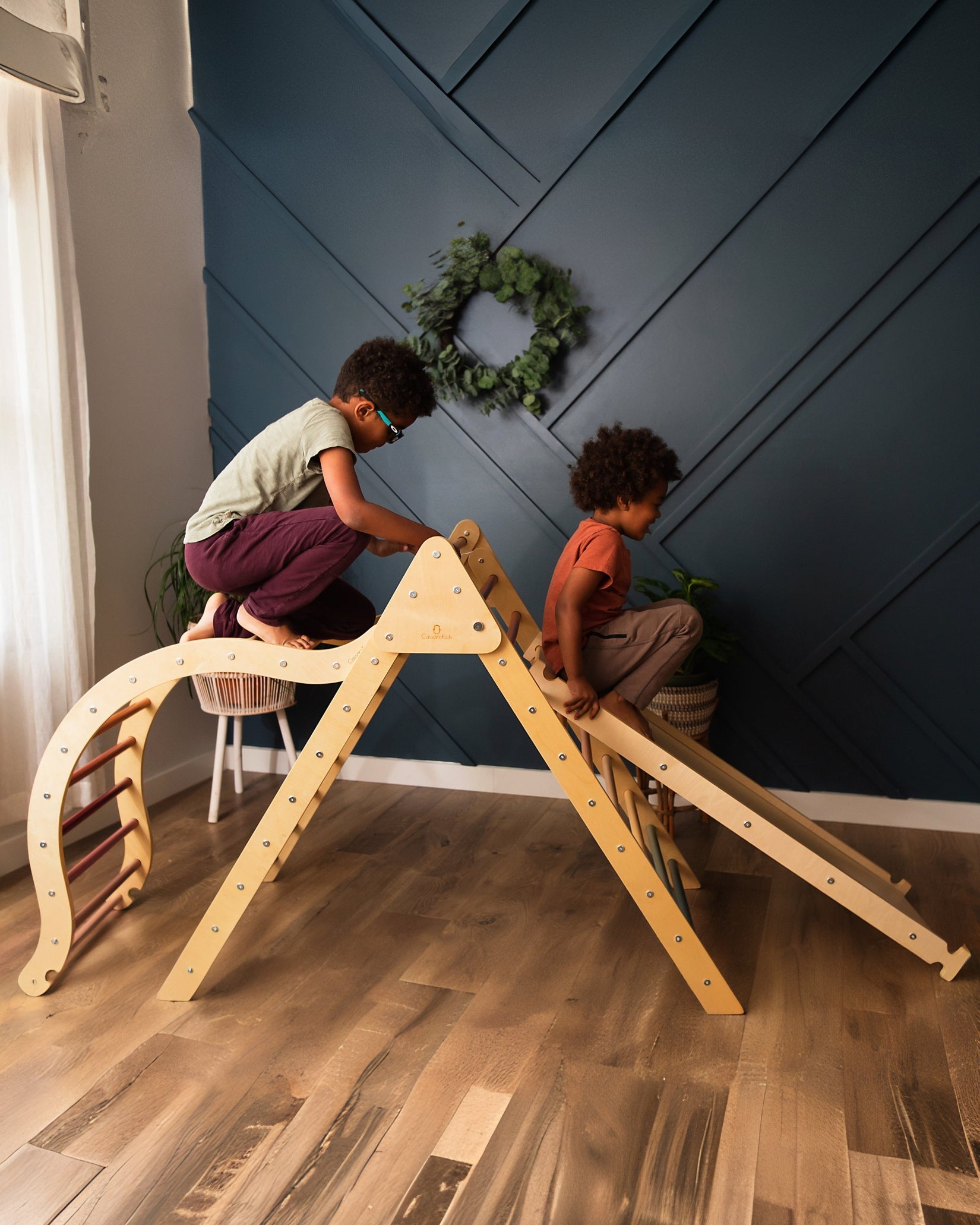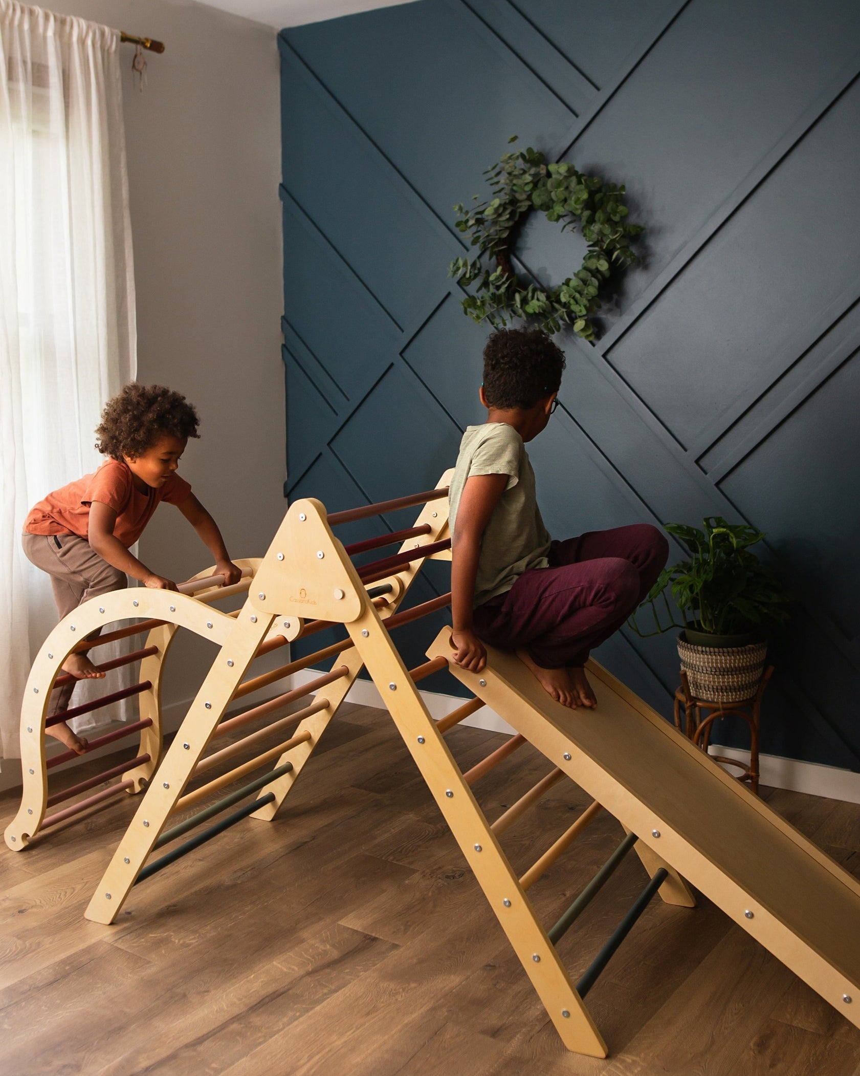 Invite the spirit of the playground into your home with this expansive set. Its elegant simplicity inspires children to unleash their creativity. Secure yours today and design a personalized adventure space. When not in use, the set offers a cozy and refined accent to any room.