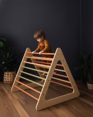 This jumbo Waldorf climbing triangle is the safe and provide an stable climbing structure. It encourages children to climb and discover through their own experience developing gross motor skills, strength and confidence. Each step on the ladder is a new achievement once children have the strength to pull themselves up, reaching and grabbing onto the rungs. As confidence grows children can begin to climb and eventually reach the top.