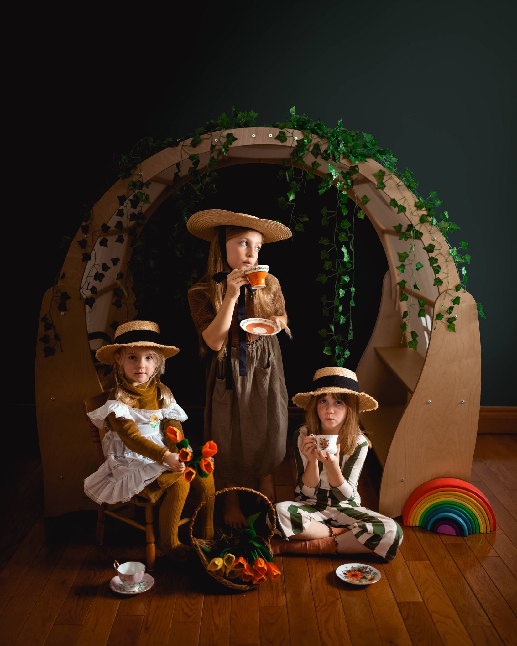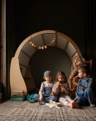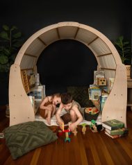 Create a cozy world of play with this solid wood Waldorf Playstand! Your child can have their very own play area, create their perfect reading nook or an imaginative play house. The Wooden Playstand will give your toddlers and preschoolers years of exploration and fun. Set up book store, library, plant shop or a cushy stuffie space for rest and relaxation. There’s plenty of room for everyone. This playstand makes a beautiful centerpiece for your child’s playroom. Give your child a world of cozy adventures. Bring extra fun and comfort to their playtime with the playstand cover. (Playstand cover is sold separately)