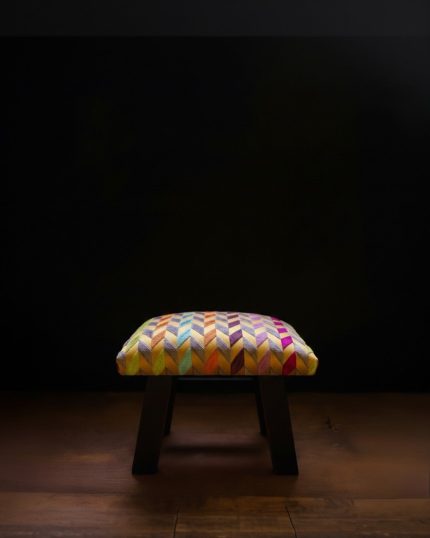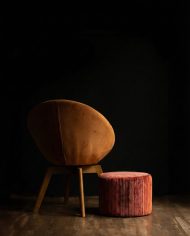 Featuring a plush, tactile cut-velvet texture, the striped pattern showcases a rich, warm palette of deep crimson, burnt gold, earthy browns, and muted olive. The fabric catches the light beautifully, adding depth & sophistication to any room.