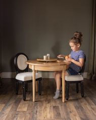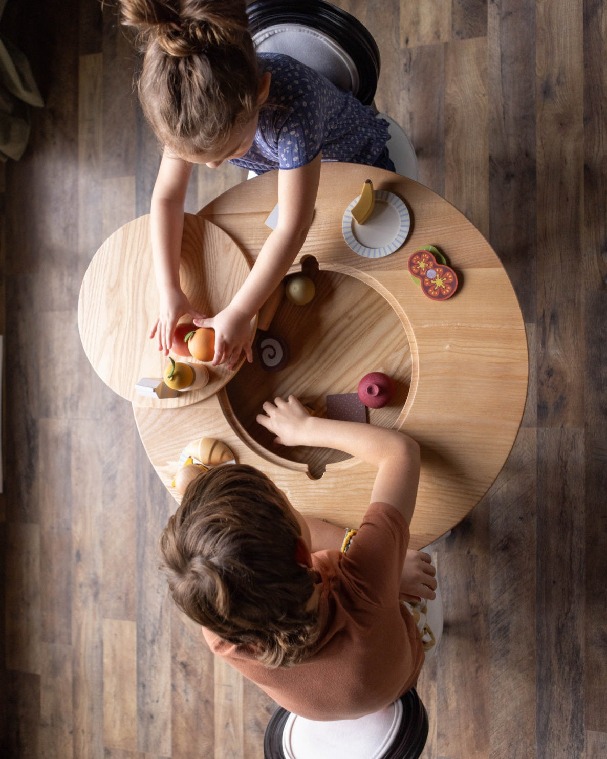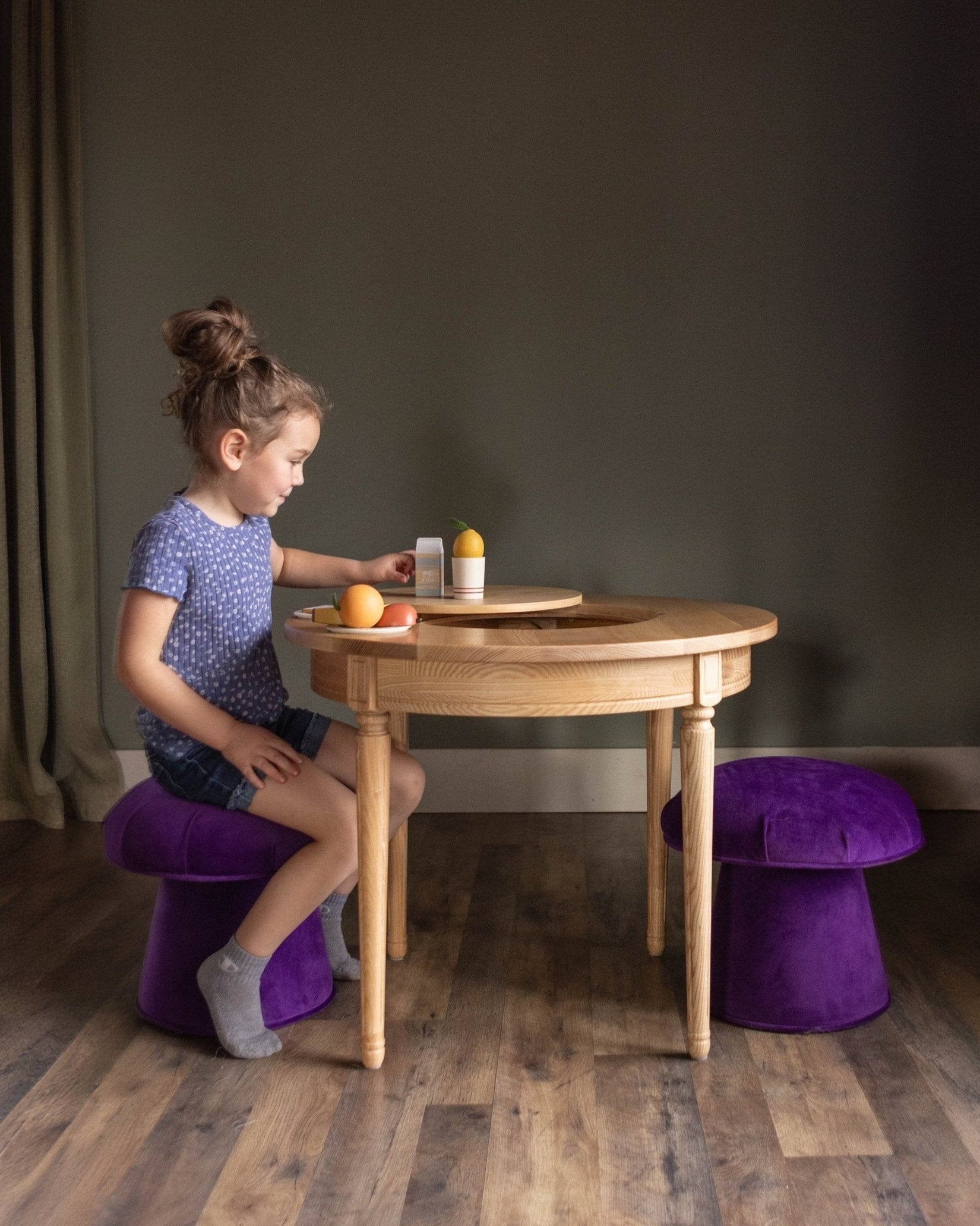 The Genevieve play table with storage is a versatile and functional addition to any playtime setup, providing both entertainment and organization. Crafted from durable solid oak, this charming table offers a safe and sturdy option for play. Choose from a range of elegant colors such as marigold, green, purple, black, and natural tones, to create a serene and personalized space for your child to relax and play in.