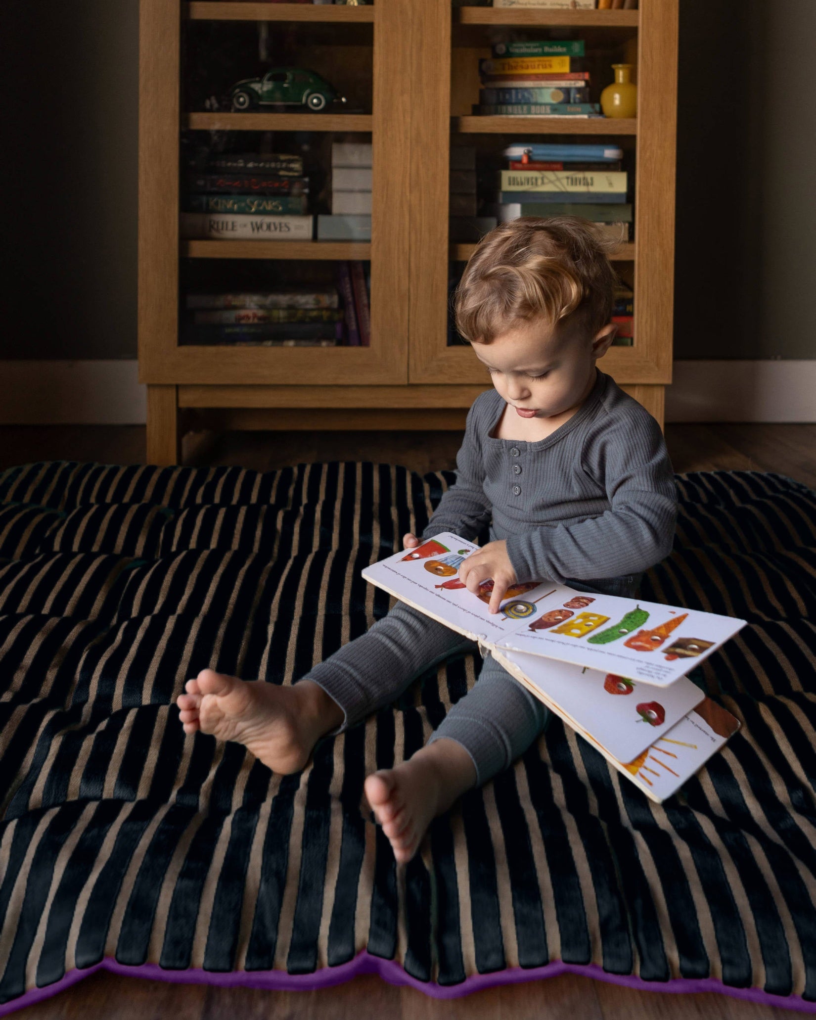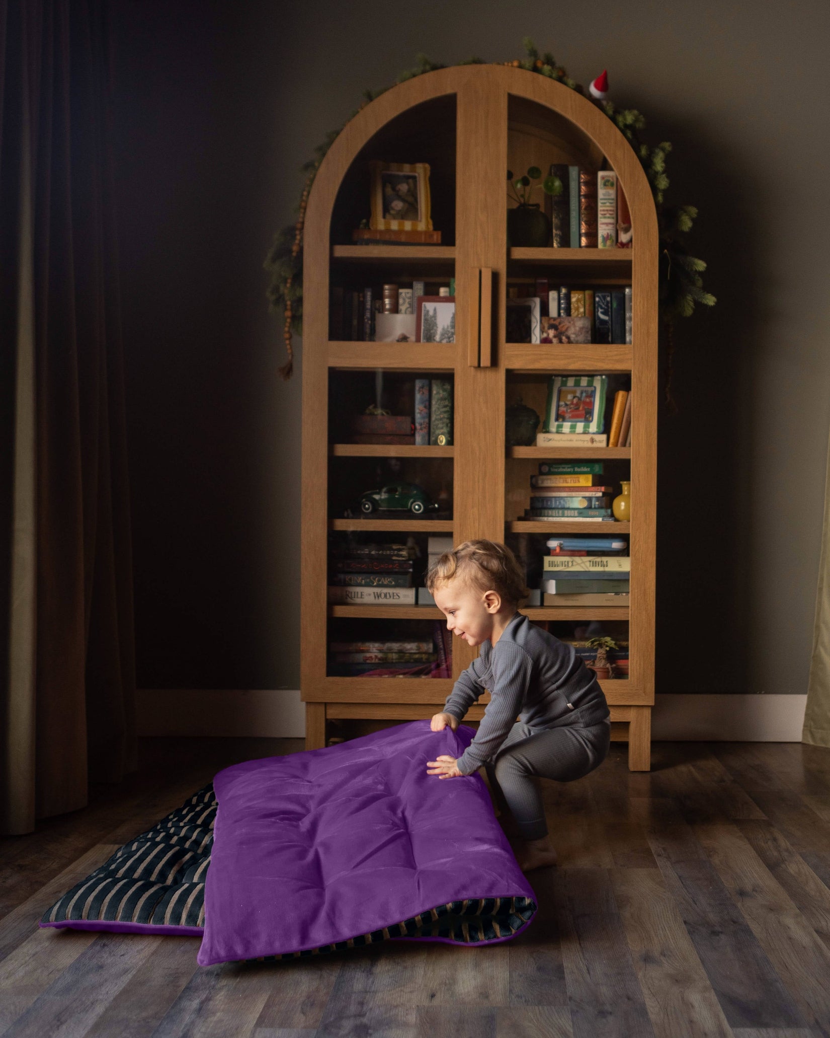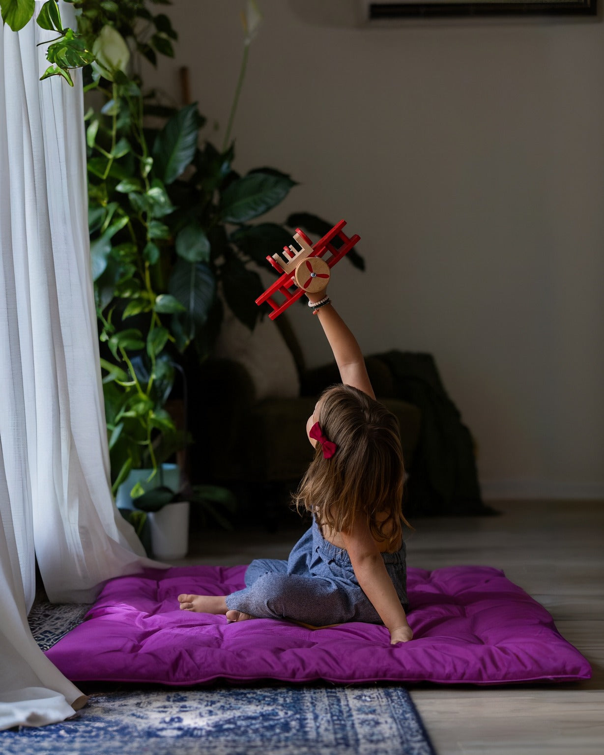 This pillow is massive, durable, and incredibly soft. The tufted construction keeps the stuffing neatly in place, even during pillow forts or storytime marathons. We love the reversible design—featuring a bright pop of color on one side and a calmer tone on the other—letting you match the energy of the room in seconds. It’s the perfect spot for kids to play and adults to relax.