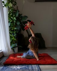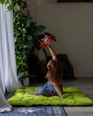 This pillow is massive, durable, and incredibly soft. The tufted construction keeps the stuffing neatly in place, even during pillow forts or storytime marathons. We love the reversible design—featuring a bright pop of color on one side and a calmer tone on the other—letting you match the energy of the room in seconds. It’s the perfect spot for kids to play and adults to relax.