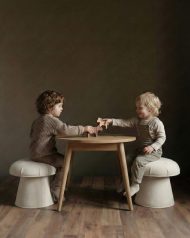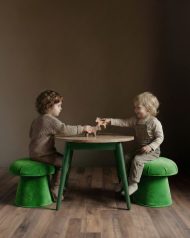The Lucille play table and mushroom stool set is thoughtfully designed to elevate playtime while keeping toys and essentials neatly organized. Featuring plush velvet-covered stools, this elegant set is crafted from solid oak wood, ensuring both durability and safety. Available in a refined palette of marigold, purple, forest green, black, and natural hues, it allows you to create a peaceful retreat tailored to your child’s favorite color, ideal for both relaxation and imaginative play.