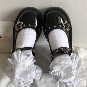 Lolita Shoes Women Flat on Platform Shoes Star Buckle Rivet Thick Sole Round Toe Girls Cross-tied Ankle Strap Casual Shoes 9151N