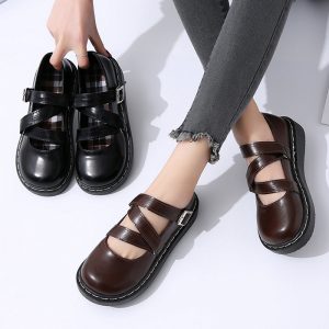 Lolita Shoes Spring Autumn Women Casual Shoes Cross-tied Buckle Platform Mary Janes Shoes Girl Retro Round Toe Ladies Shoe 8581N