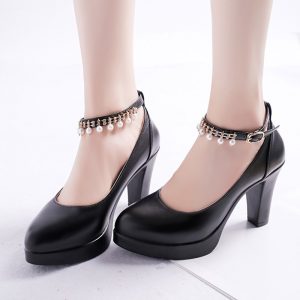 Women Crystal Pearl Buckle Strap Pumps Black Platform High Heels Dress Shoes Wedding Shoes White Black Zapatos Mujer 7147N