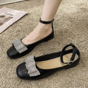 Women Flats Summer Autumn New Style Woman Ankle Strap Boat Shoes Crystal Bling Shallow Ladies Shoes Zapatos Mujer 9349N